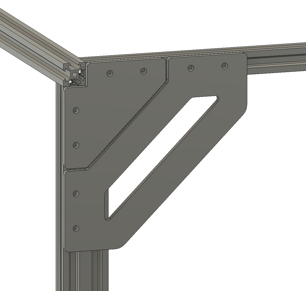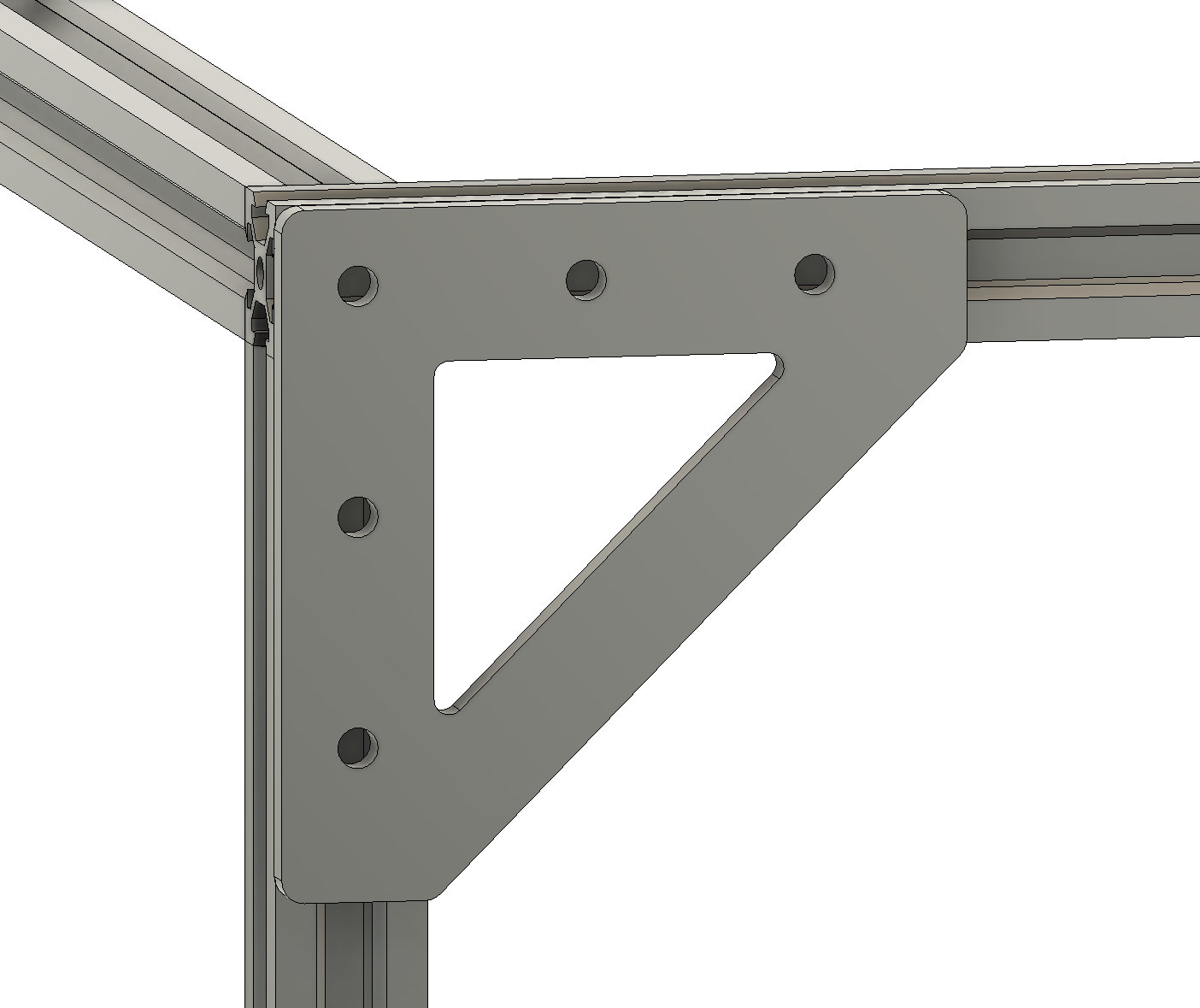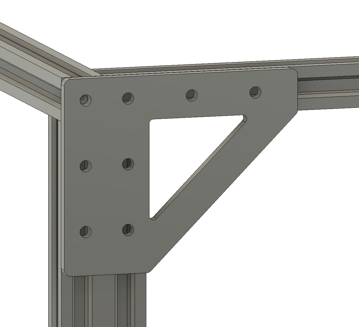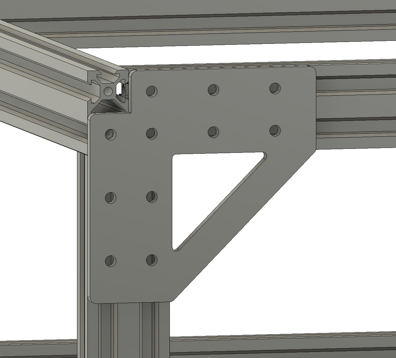 There are a variety of ways to join 2020 and 2040 extrusuions to make corners. Printer kits commonly use end-tapped 2020 extrusions and holes drilled through extrusions to hold frames together. I'm not a huge fan of this approach as drilling is permanent and aluminum threads aren't super strong long-term. If we avoid tapping and drilling the next most common attachment method seem to be 2020 and 2040 interior corners followed by L plates. My personal preference is to use both aluminum 2040 interior corners (yes, on the 2020-to-2020 joints) as well as L-plates. The L-plates are handy for alignment and the aluminum corners really lock the joint in. You can get L and T plates in aluminum and steel however that may be overkill if you're also using interior corners. I have a selection of plates you can print: