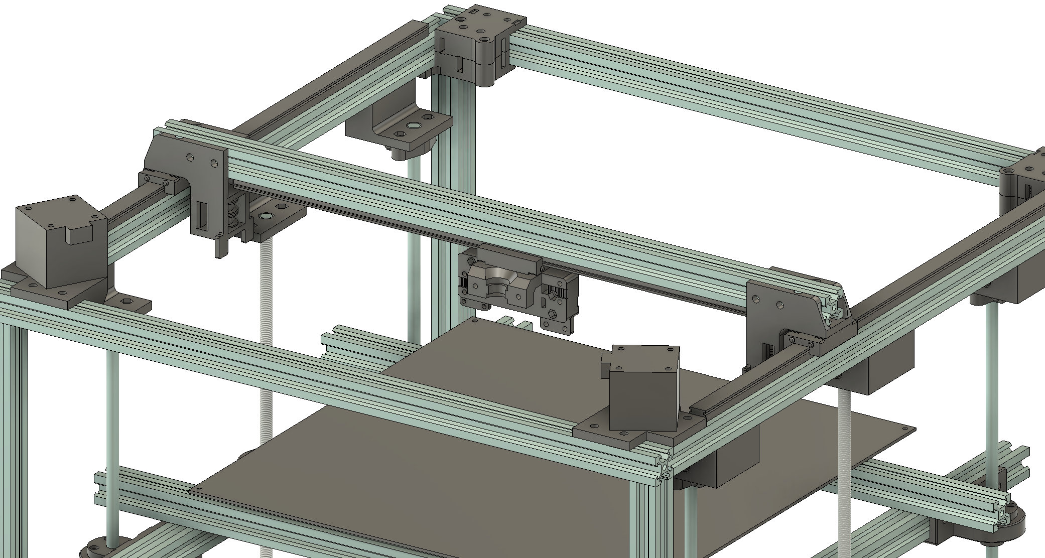 The Big Plans Print System based on CoreXY kinematics. Traditional cartesian-based printers used steppers oriented to the X and Y axes. Since the Y axes moves the X motor must also move with the axis. This means the X motor must be mounted to the Y gantry greating increasing the moving mass of the Y axis. In addition, the motor is offset to one side so there is also a weight imbalance so two steppers must be used on the Y axis to ensure the gantry moves evenly. Increasing mass means more inertia so generally more mass means slower acceleration and more artifacts (eg: 'echo') when changing direction. Increasing the rigidity of the gantry can counter-act some of these effects but the fast, precise movement of a 3D printer calls for a wholistic approach and you should try to reduce mass as well as improve rigidity where possible.