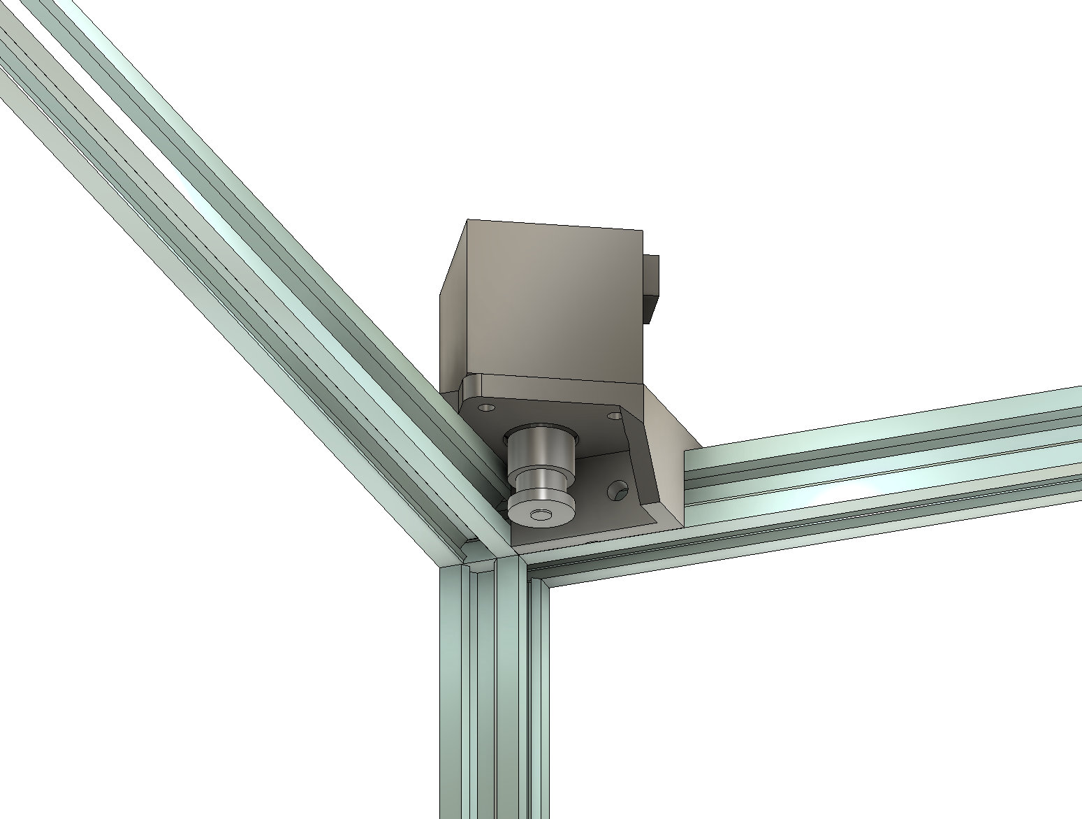 If you are using 2040 extrusions for the frame vertical components and then 2020 for the upper horizontal frame you then orient the top front extusion to be on the inside of the 2040 extrusion and the standard mounts should work normally. If the horizontal 2020 extusion is on the outside of the vertical 2040 extrusion then you will need to mount the blocks upside down and will not be able to pass-through the 2040 extrusion in a ladder-style design.